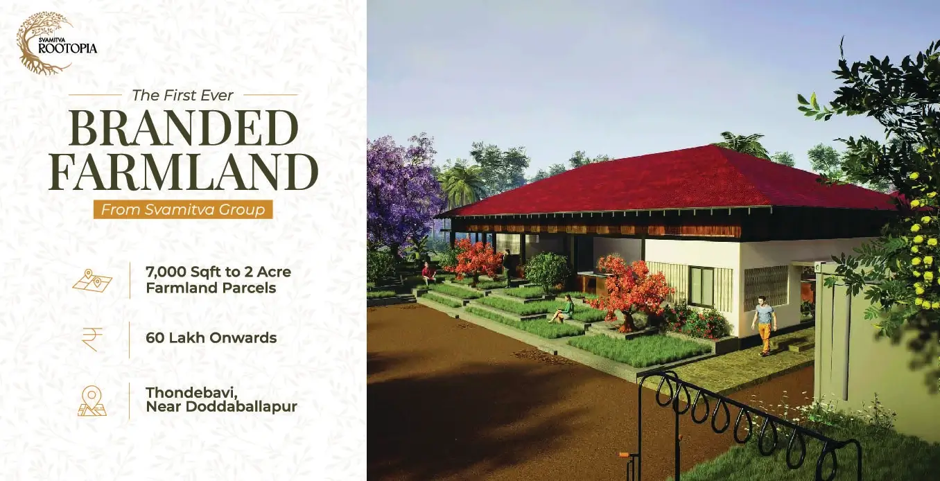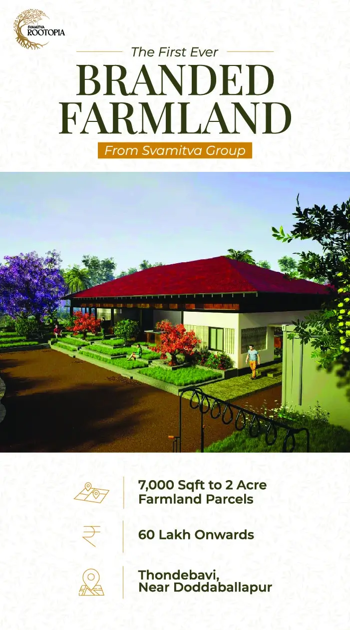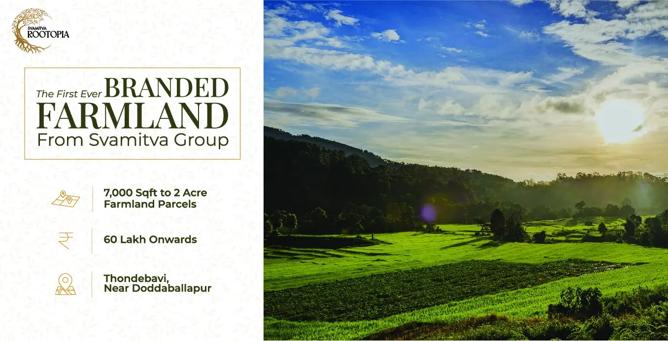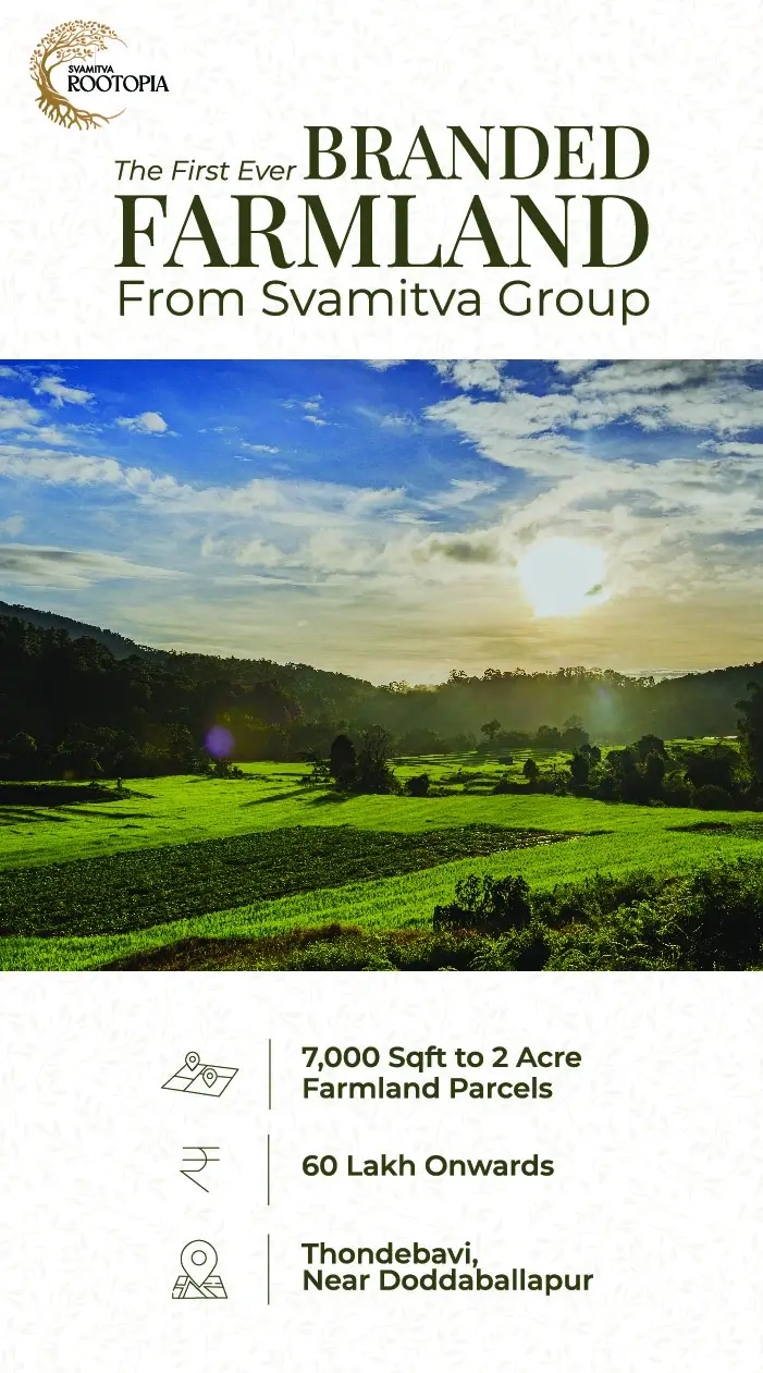Experience a first-of-its-kind concept in Bengaluru - branded farmland plots set in a 48-acre curated community just 45 minutes from Doddaballapur. Svamitva Rootopia blends the charm of nature with thoughtfully planned infrastructure and lifestyle amenities, offering you a serene escape that’s still closely connected to the city.